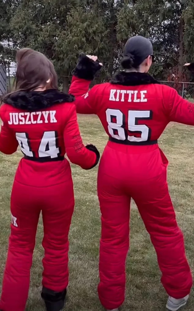 Kristin Juszczyk turns game-day fashion into a statement with her bespoke 49ers snowsuit. Here high fashion meets team spirit, DIY flair, and viral style.